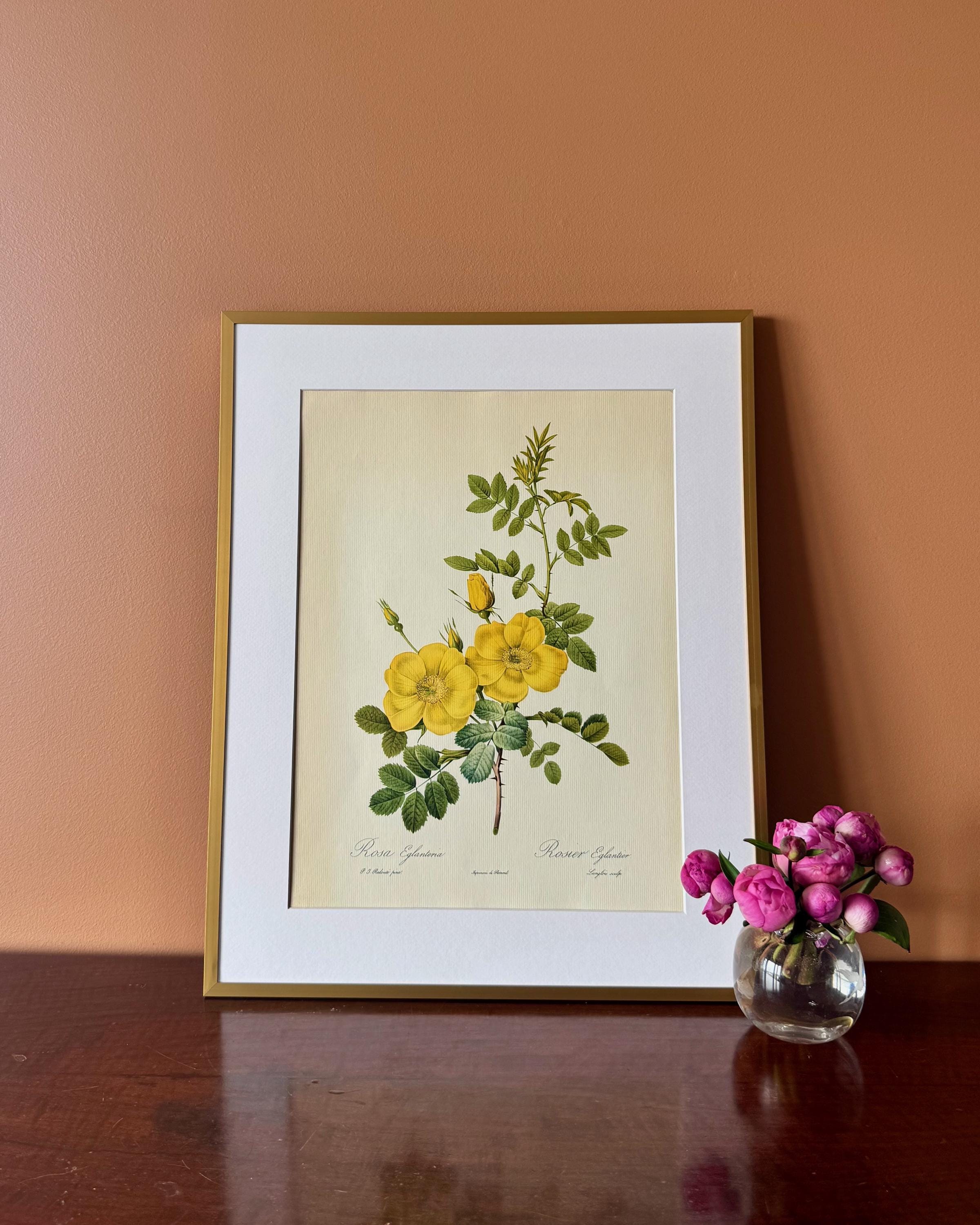 This illustration comes from a traditional botanical study and reflects the clarity and precision typical of early 20th-century floral prints. The vivid yellow flowers give this piece a cheerful, uplifting quality, making it especially well suited to kitchens, studies, or spaces that benefit from a touch of warmth and colour, either on its own or within a curated gallery wall.