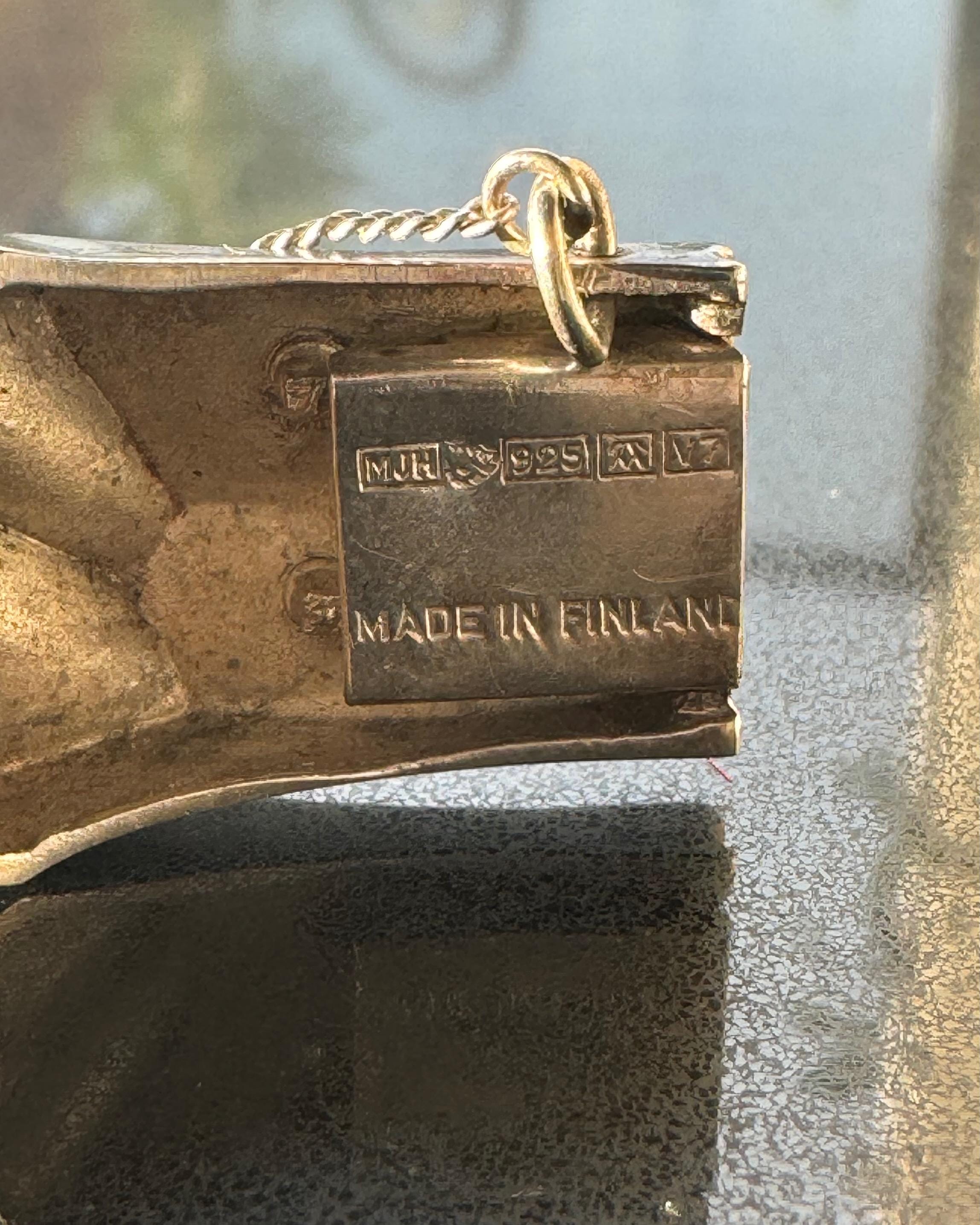 Hallmarked internally with the MJH (Matti J. Hyvärinen) designer mark, Lapponia maker’s marks, 925 silver fineness, Finnish assay marks, and ‘Made in Finland’.