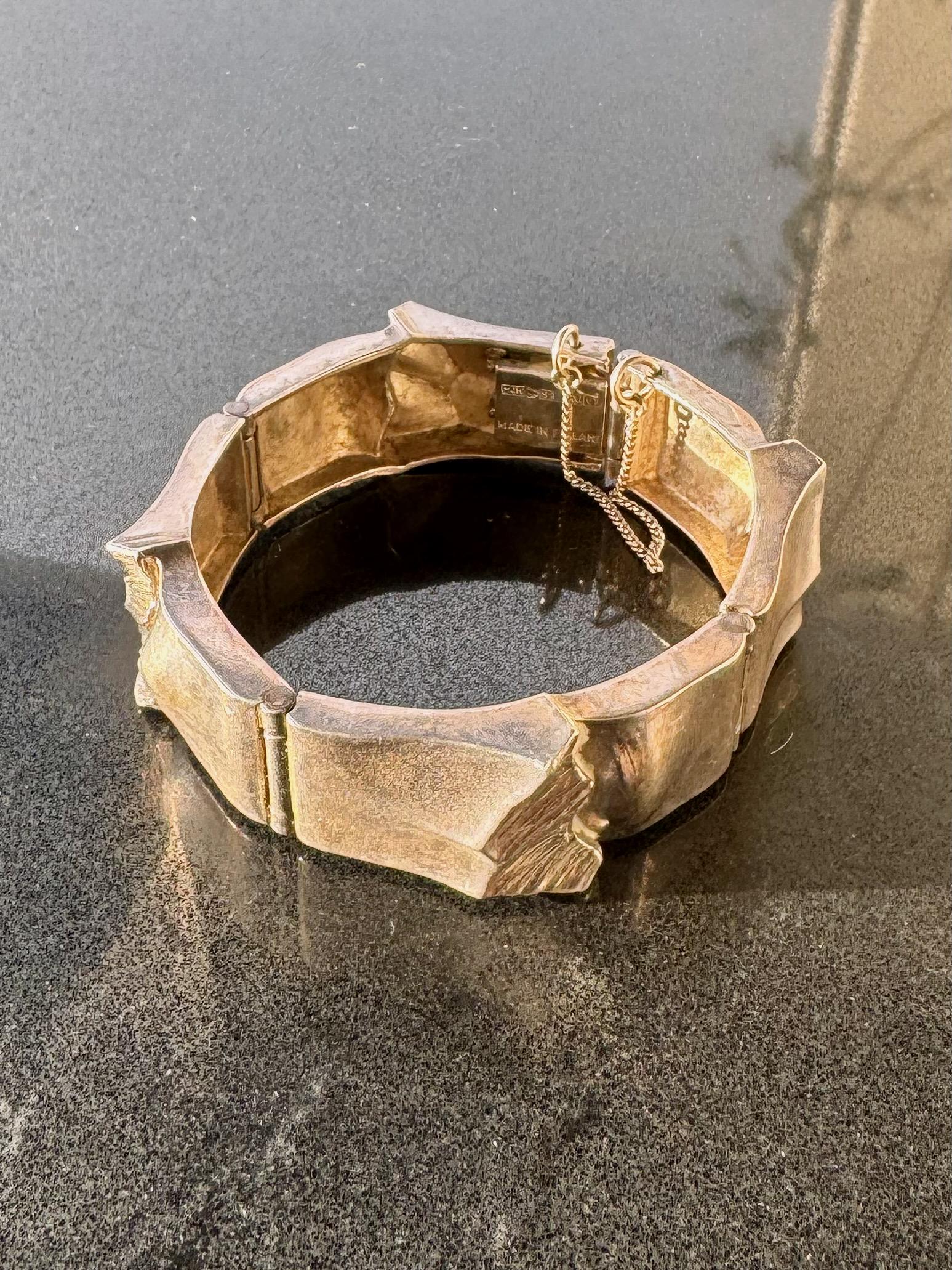A powerful sculptural bracelet designed by Matti J. Hyvärinen (MJH) for Lapponia, Finland, dating to the 1970s.