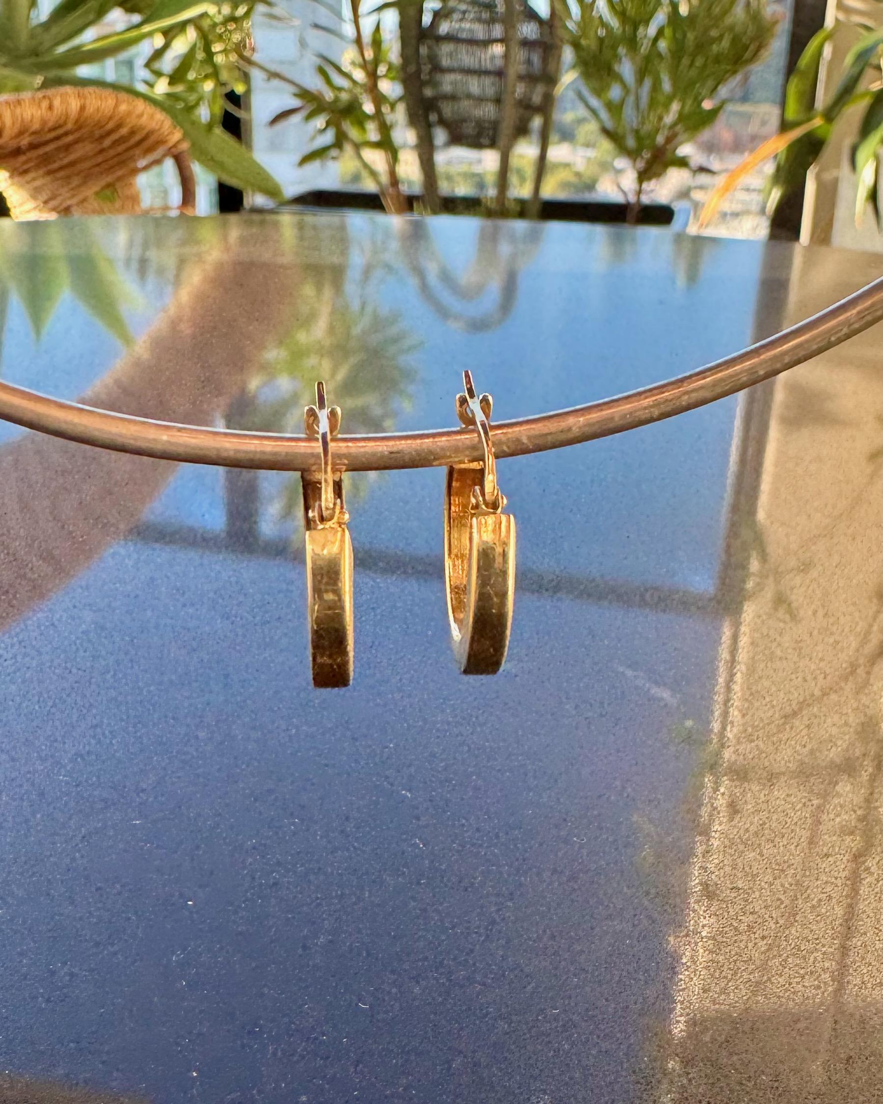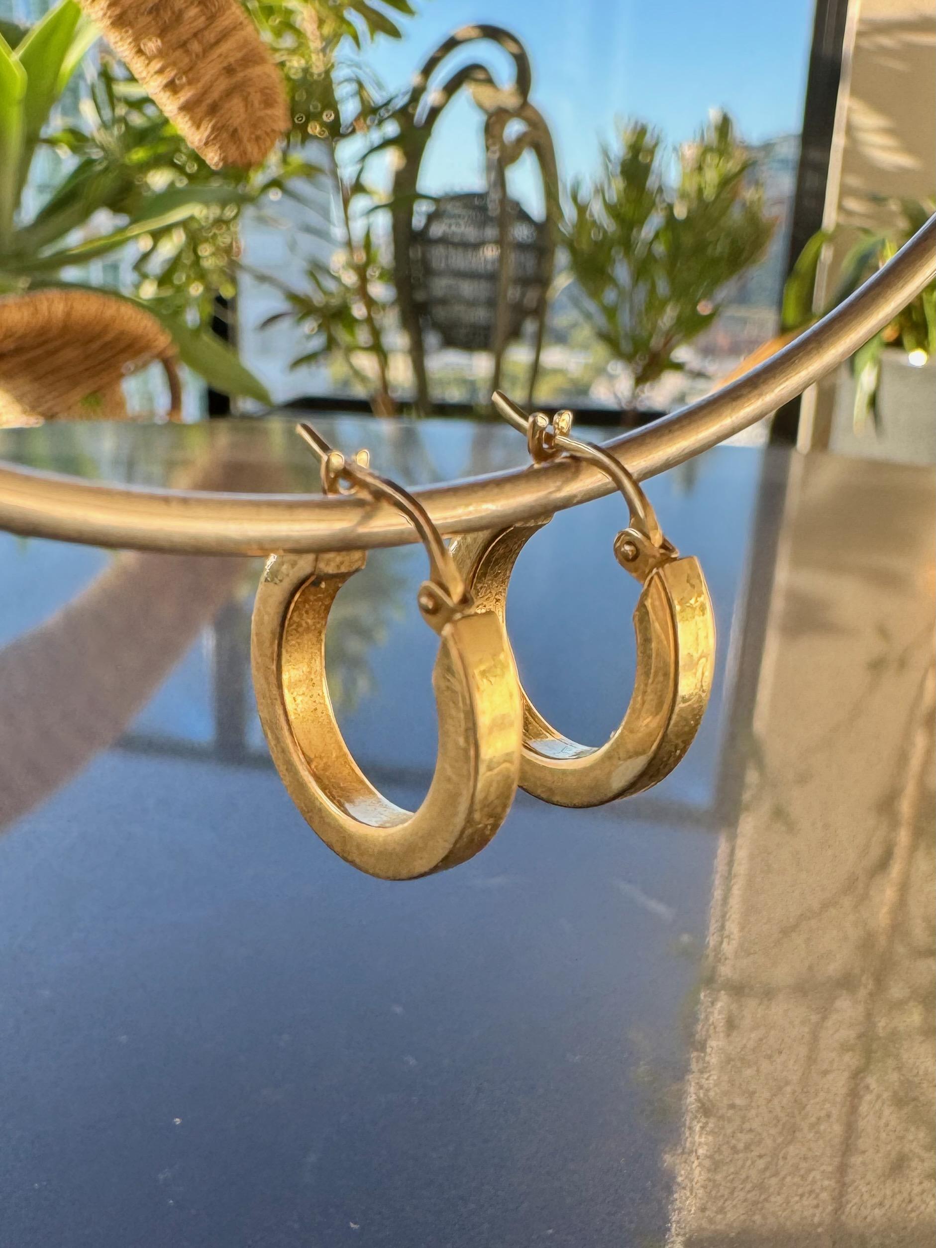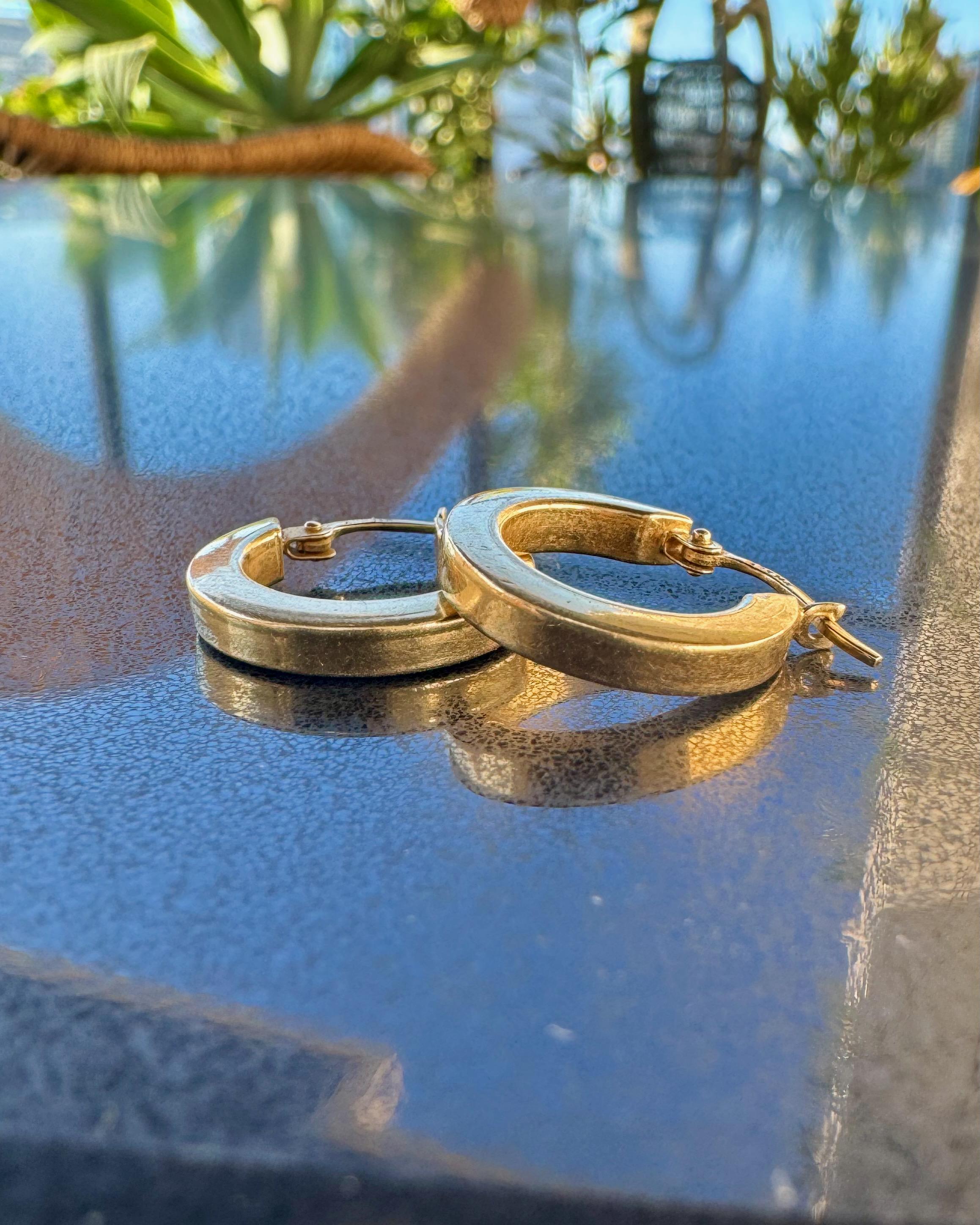Lovely lightweight hoops crafted in solid 14K yellow gold. These classic round earrings weigh 2.61 grams total, perfect for everyday wear or as a thoughtful gift. Hallmarked “14K” with a maker’s mark (ANN/AHH). Comfortable and timeless, these are ideal for anyone who loves fine gold jewelry that’s versatile and elegant.