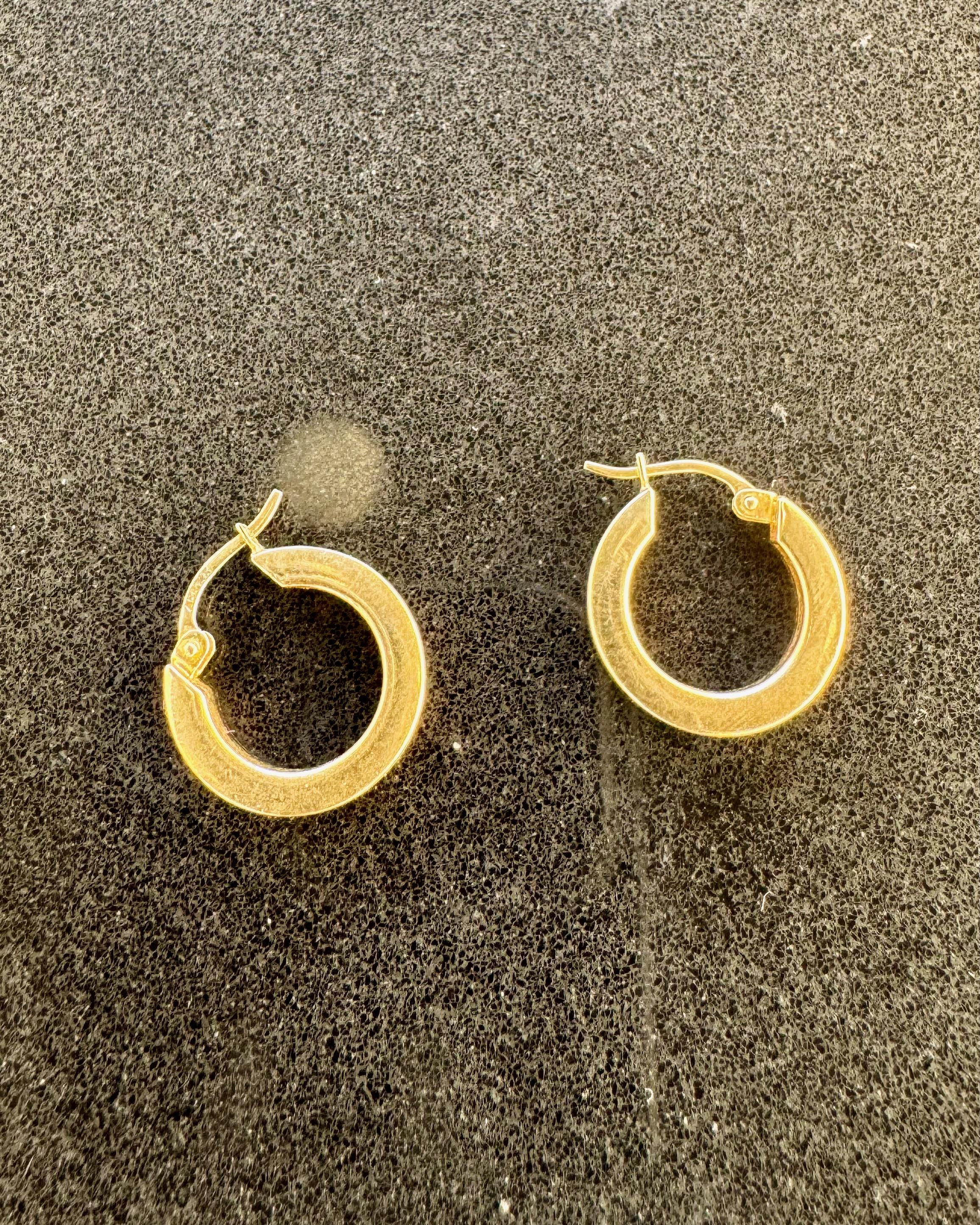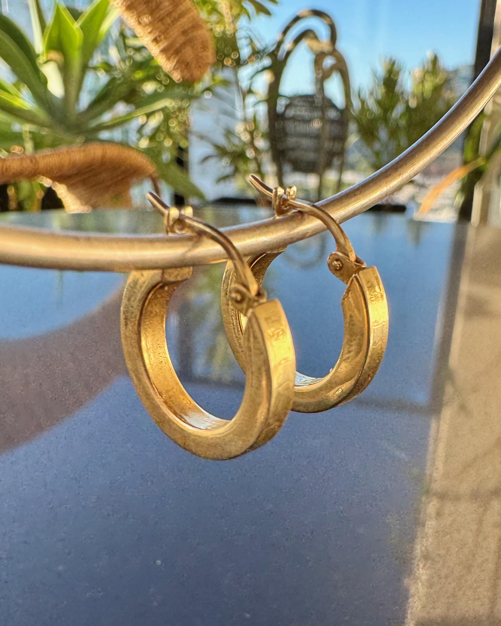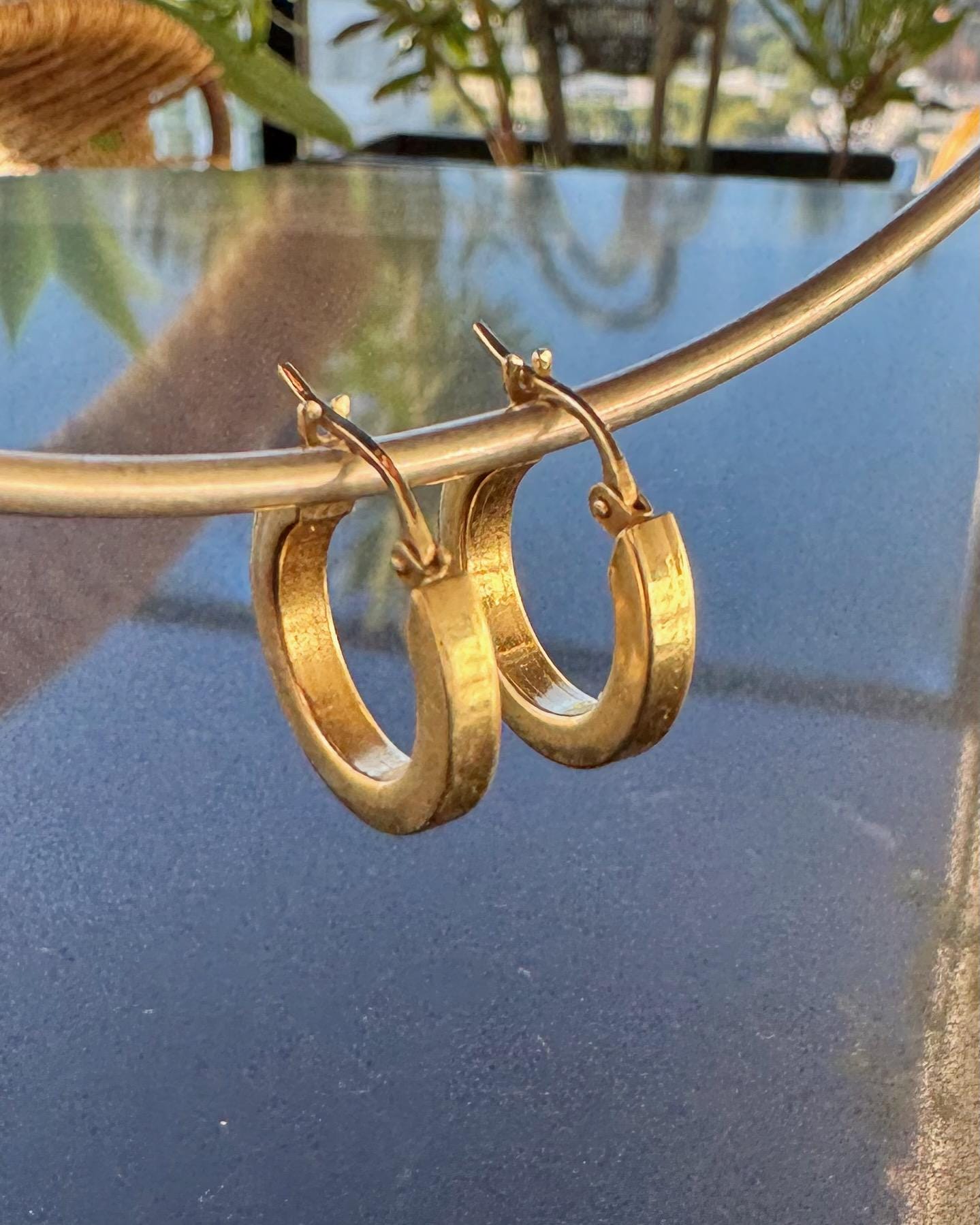 Lovely lightweight hoops crafted in solid 14K yellow gold. These classic round earrings weigh 2.61 grams total, perfect for everyday wear or as a thoughtful gift. Hallmarked “14K” with a maker’s mark (ANN/AHH). Comfortable and timeless, these are ideal for anyone who loves fine gold jewelry that’s versatile and elegant.