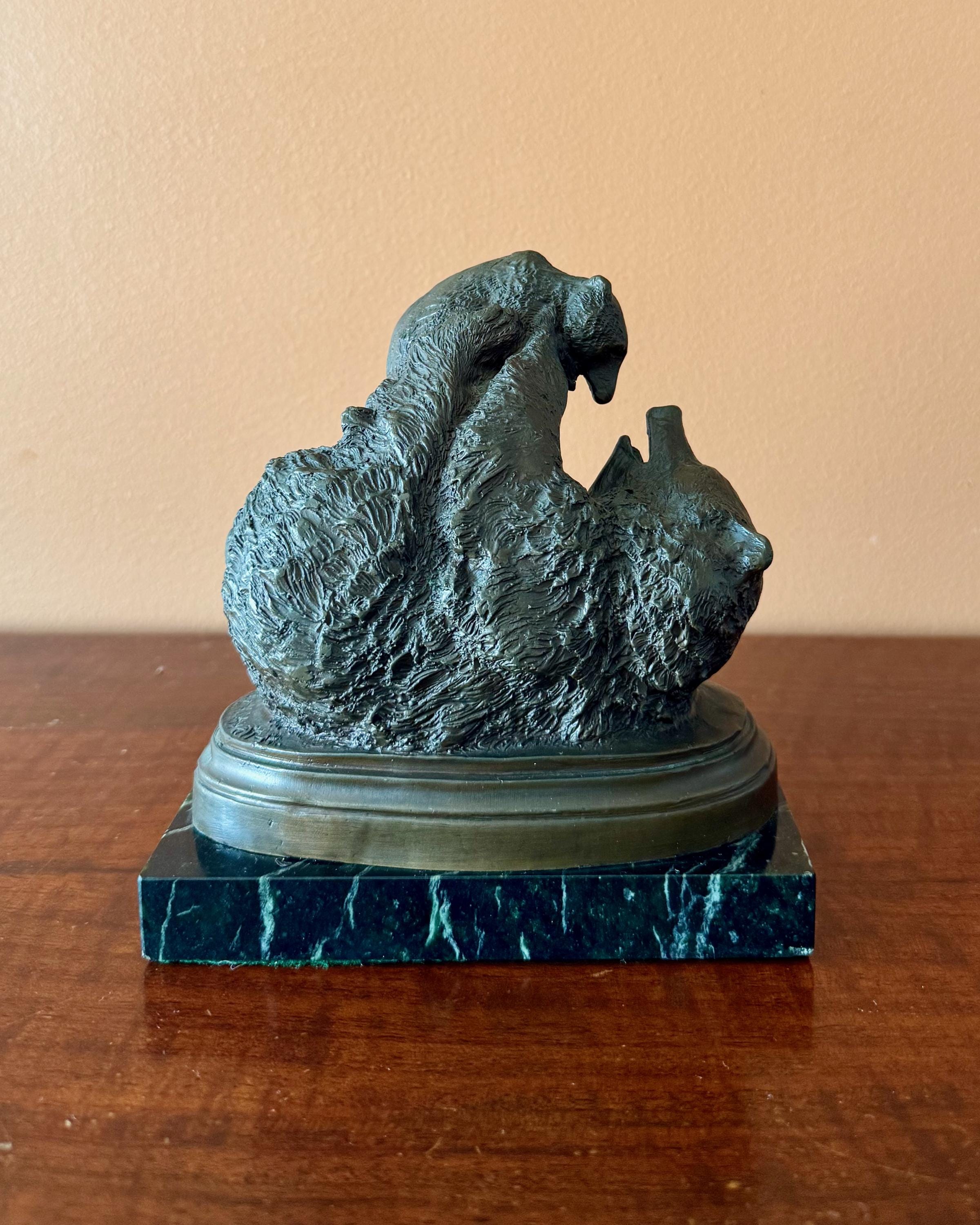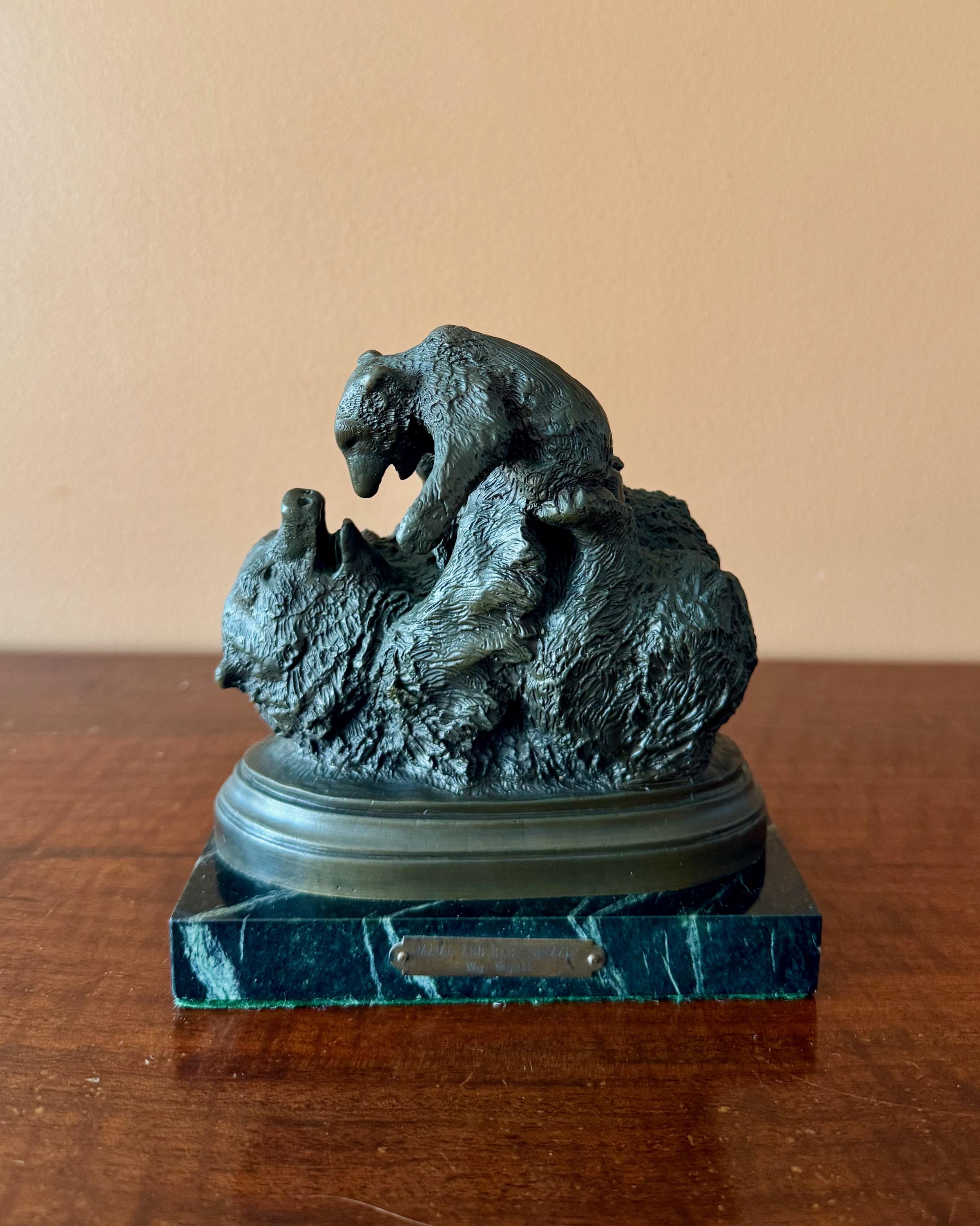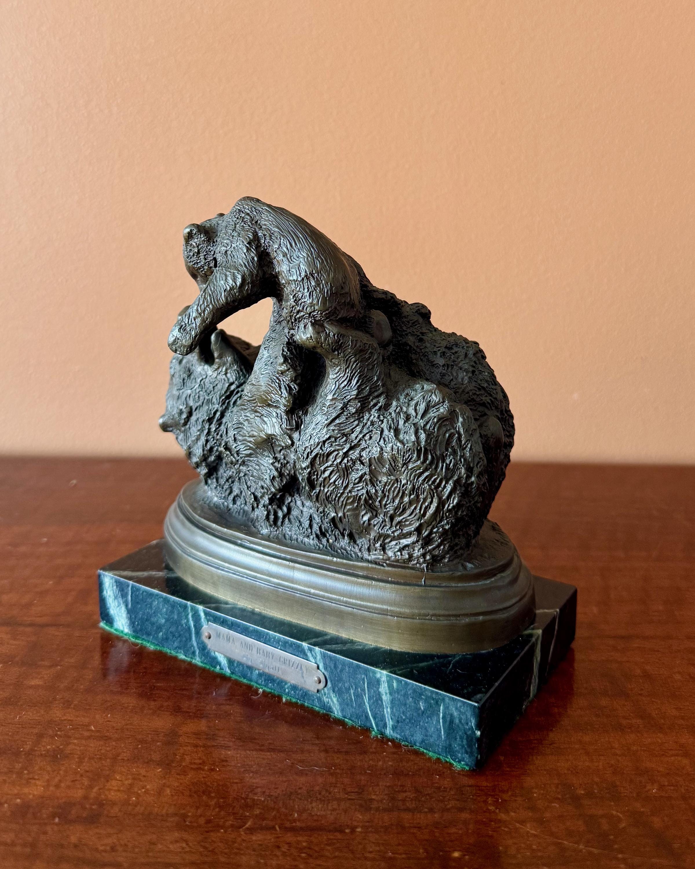 This cabinet-scale composition captures a playful and tender moment between mother and cub, with the cub climbing across the mother’s back. The modelling is richly detailed, particularly in the fur texture, and the composition has excellent movement and presence despite its intimate scale.