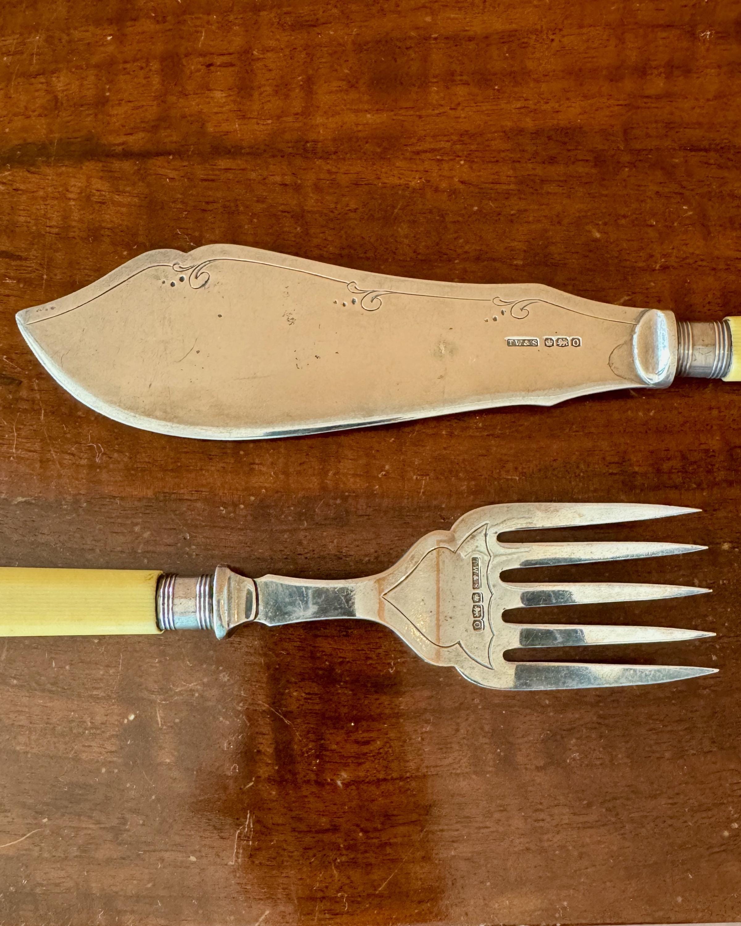 Condition: Good antique condition with surface wear and light patina consistent with Victorian silver. Bone handles are secure. No major cracks observed.